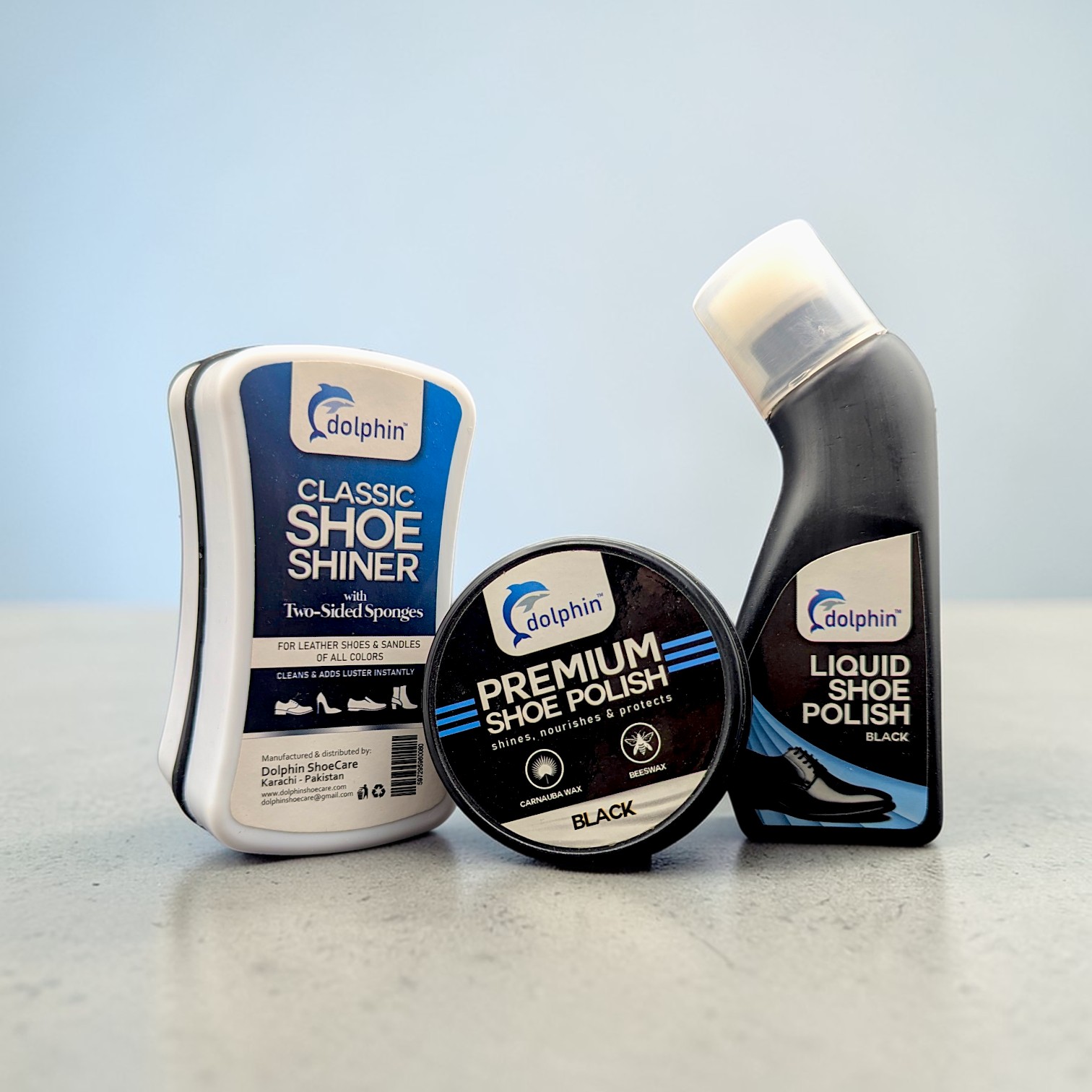 Classic Shoe Shine Sponge – Dual Sided – NEUTRAL + Premium Shoe Polish – BLACK + Liquid Shoe Polish – 100ml – BLACK