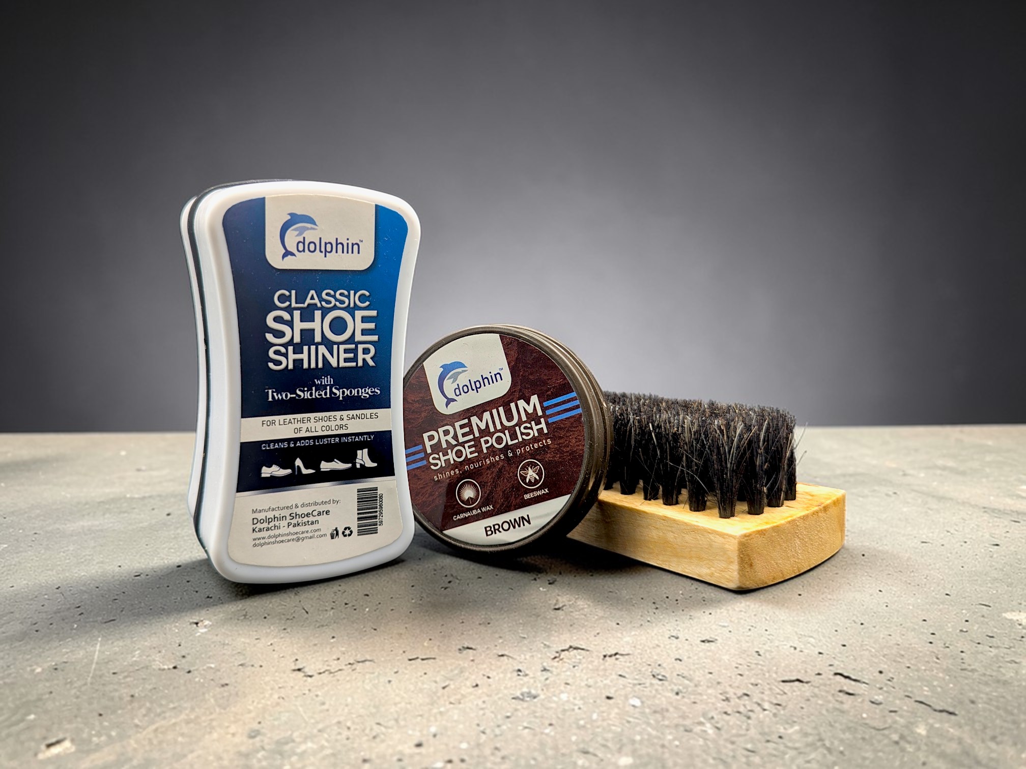 Classic Shoe Shine Sponge – Dual Sided – NEUTRAL + Premium Shoe Polish – BROWN + Hair Shoe Brush